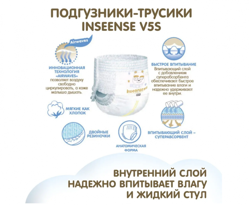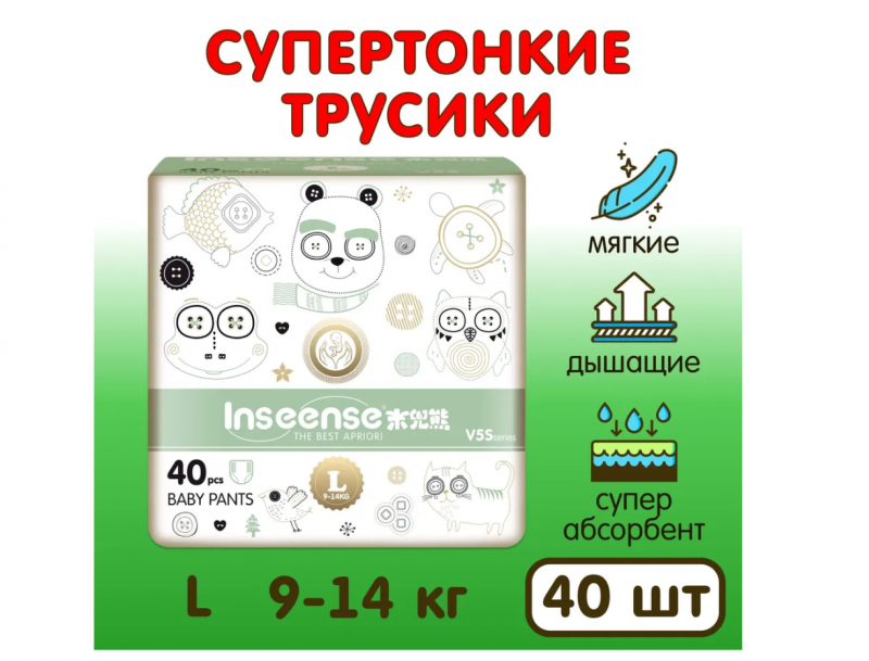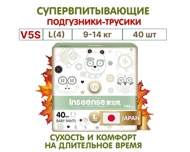 Подгузники-трусики INSEENSE V5S L (9-14 кг) 40 шт интересное: