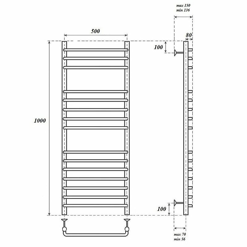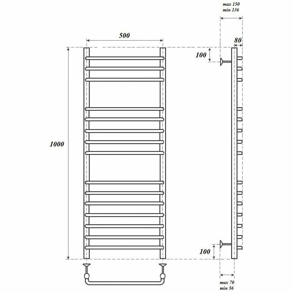 Водяной полотенцесушитель Energy Ideal 800x500