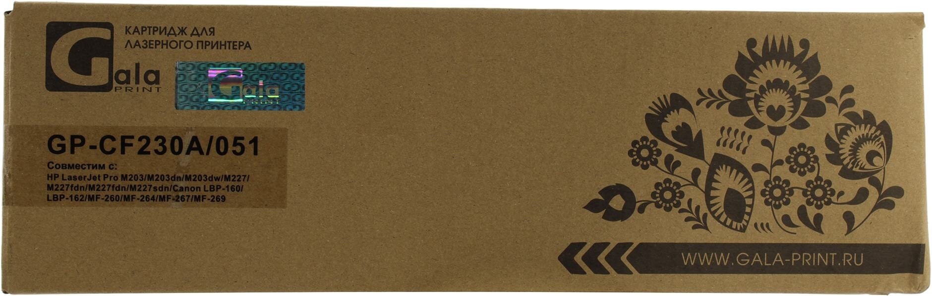 Картридж GP-CF230A/051 (№30A) для принтеров HP LaserJet Pro M203/M203dn/M203dw/M227/M227fdn/M227fdn/M227sdn/Canon LBP-160/LBP-162/MF-260/MF-264/MF-267/MF-269 1600 копий GalaPrint