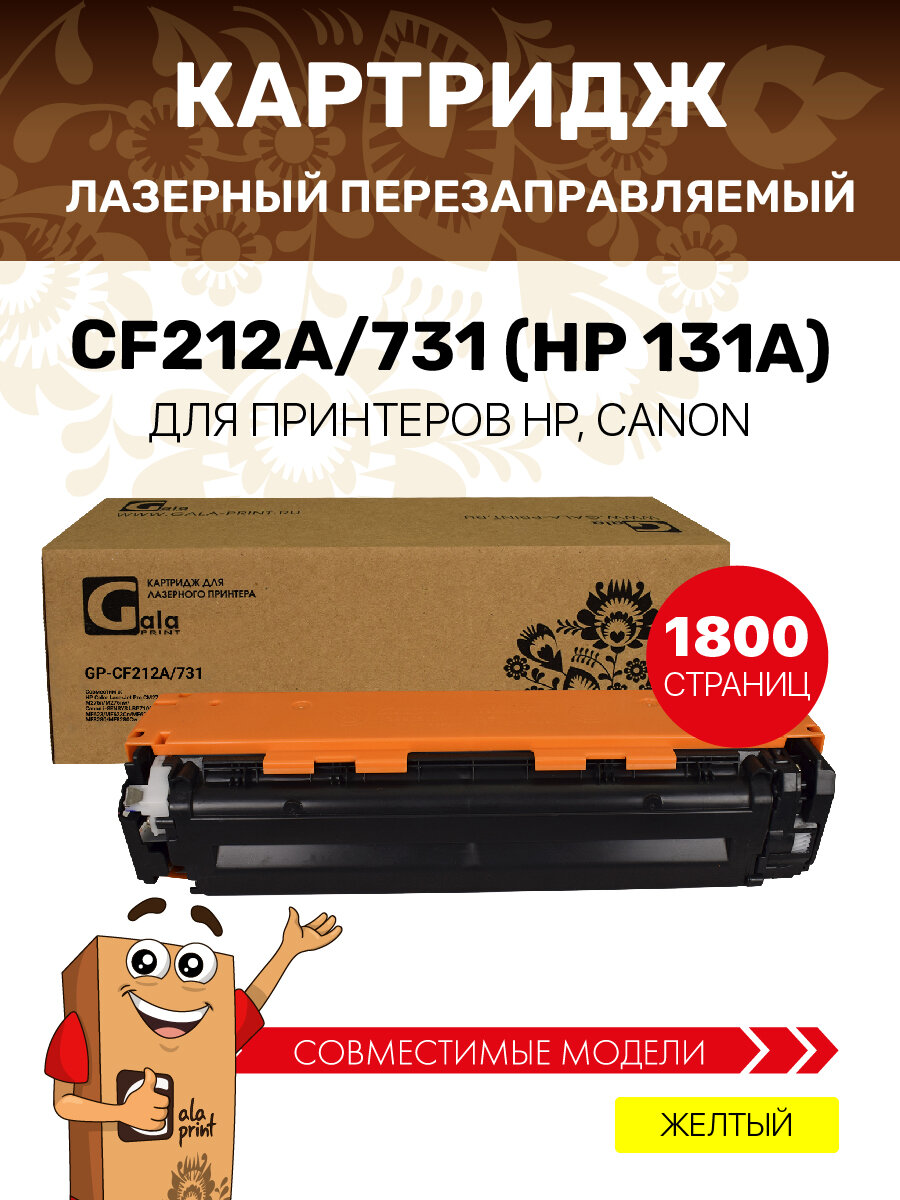 Картридж GalaPrint CF212A/731 (HP 131A) для принтеров HP Color LaserJet Pro CM276/CM251/Canon i-SENSYS LBP7100/LBP7110/MF623/MF628/MF8230/MF8280 1800 копий лазерный, совместимый, цвет желтый