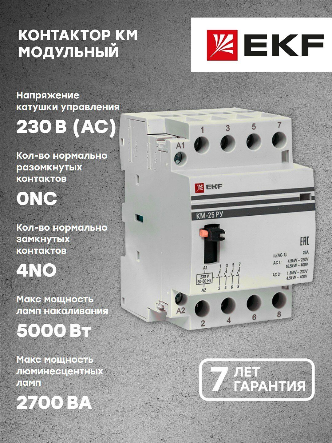 Контактор модульный КМ РУ 63А 4NO (3 мод.) EKF PROxima интересное: