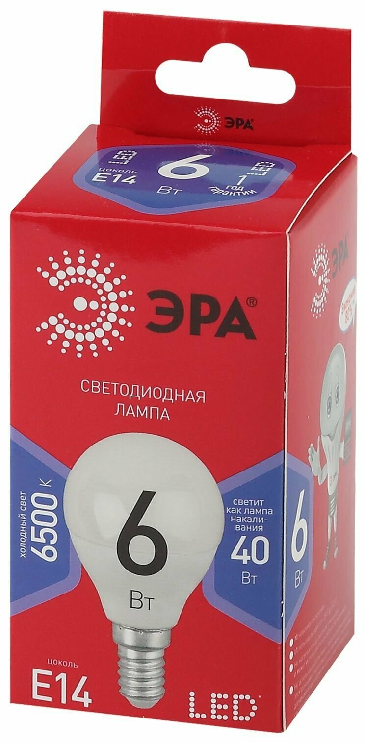 Лампочка светодиодная ЭРА LED P45-6W-865-E14 R 6500K шарик 6 Вт