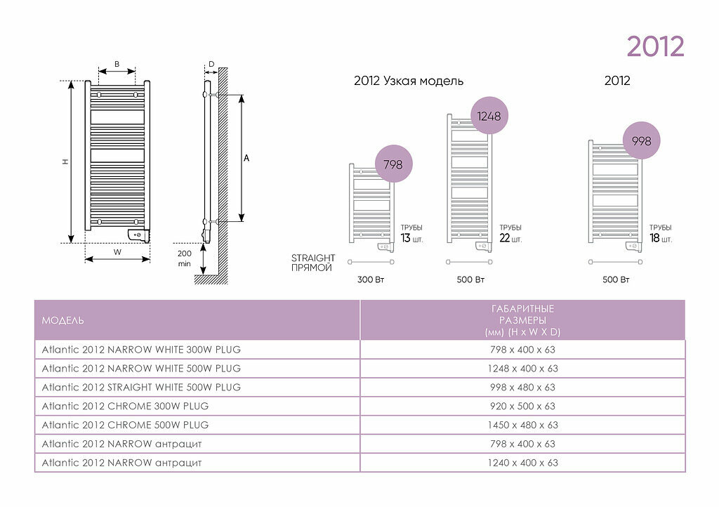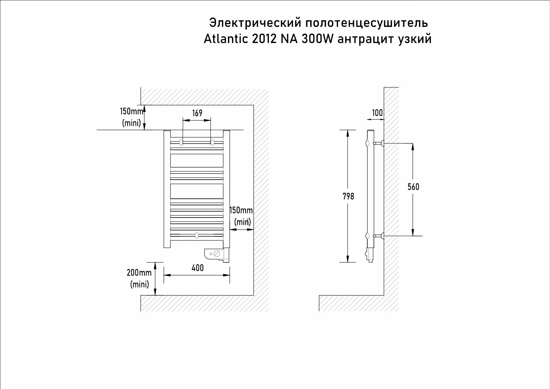 Электрический полотенцесушитель Atlantic 2012 NA 300W антрацит узкий