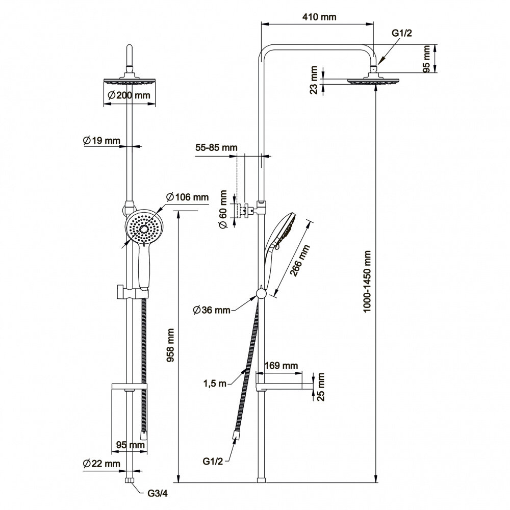 Душевая колонна 200 мм Swedbe Calypso 5058