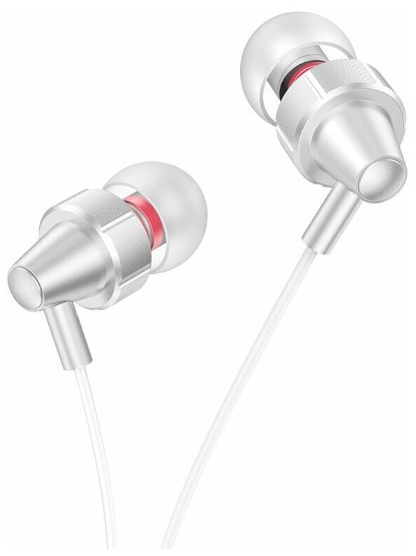 Проводные наушники M90, Delight wire-controlled earphones with microphone, HOCO, вакуумные, серебро