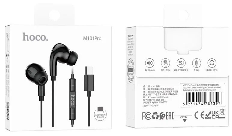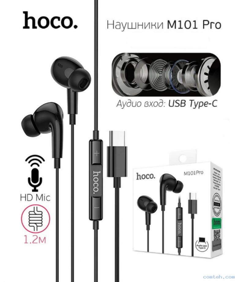 Купить Наушники проводные с микрофоном Hoco M101 Pro для телефона айфон, samsung galaxy, readmi pro 2, 3, realme -черный