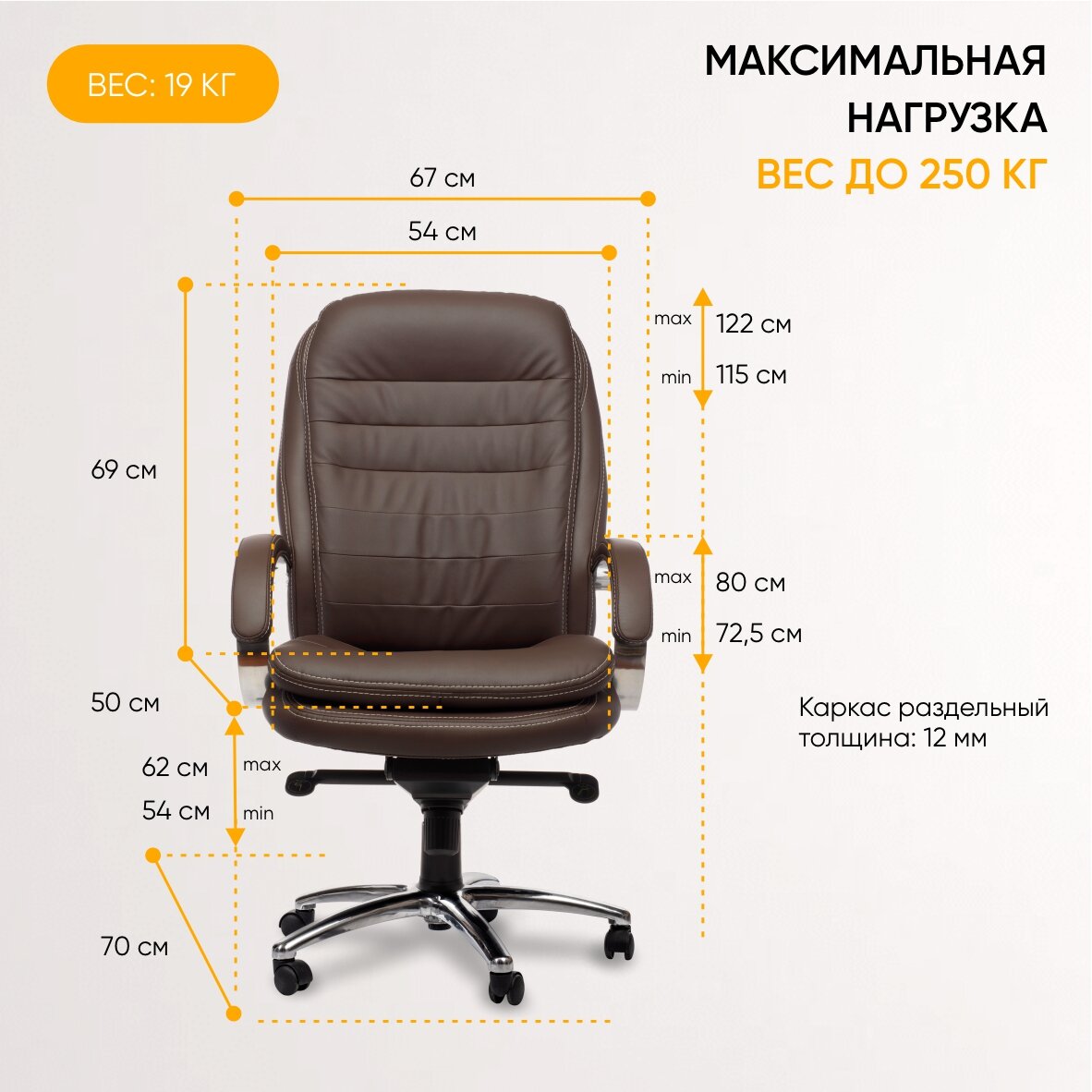 Компьютерное кресло руководителя РосКресла Релакс офисное, обивка: экокожа, цвет: коричневый