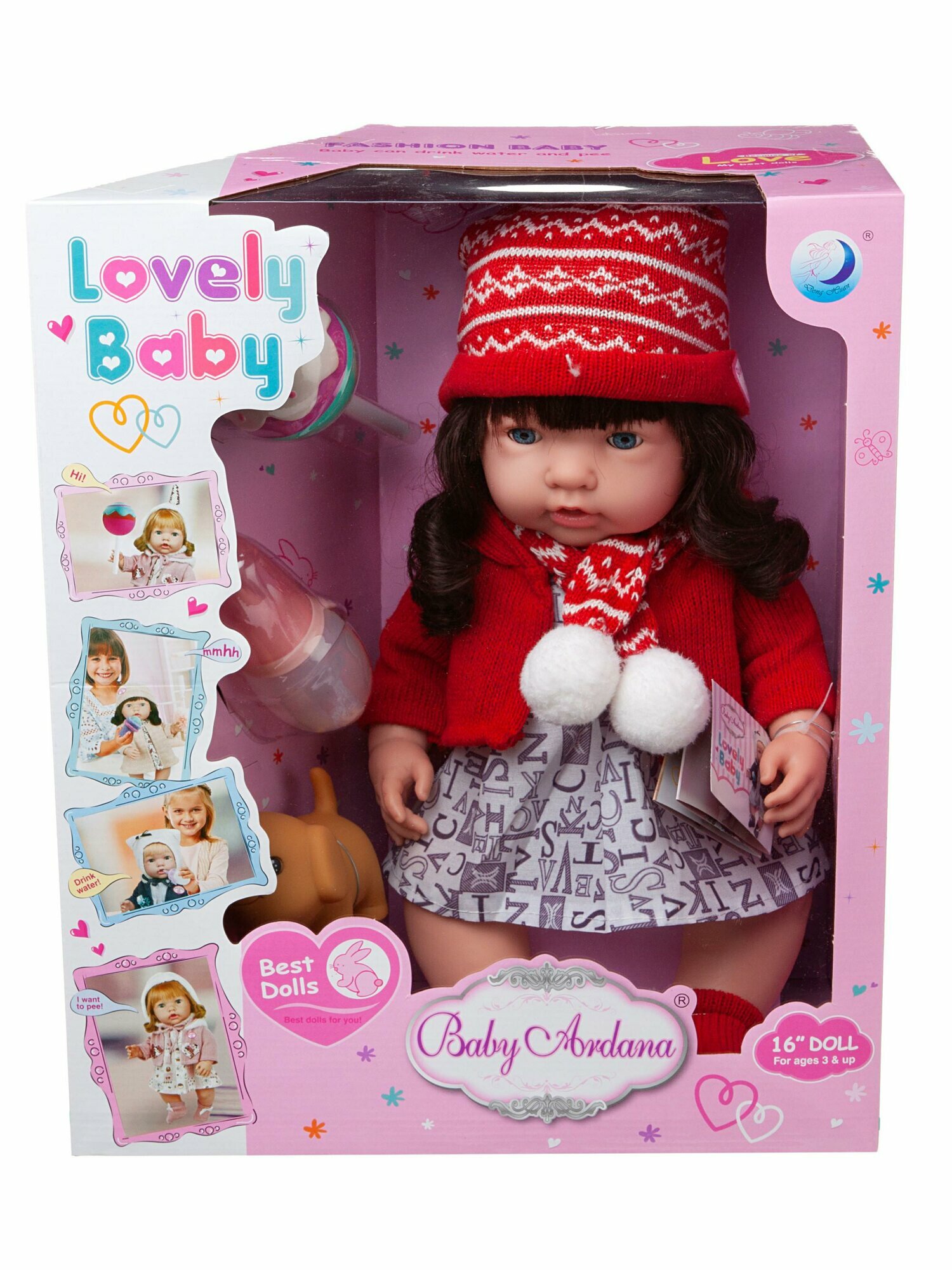 Пупс-кукла "Baby Ardana", 40см, в платье и красной курточке, в наборе с аксессуарами, в коробке