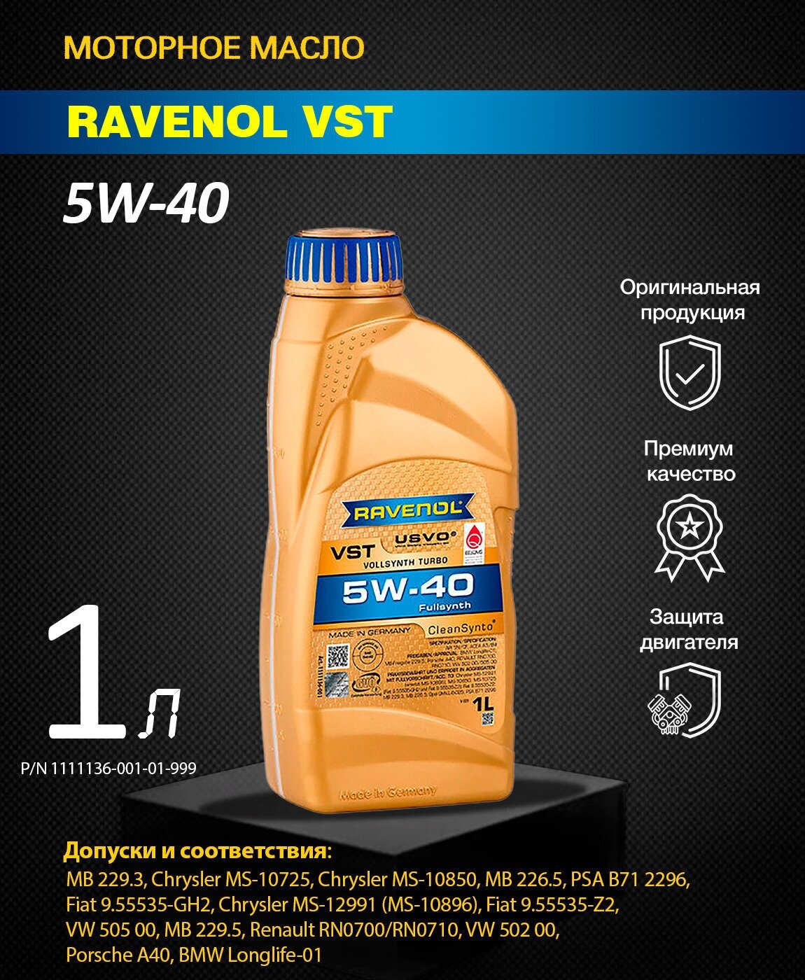 Масло моторное VST SAE 5W-40 (1л) RAVENOL Арт. 4014835790117