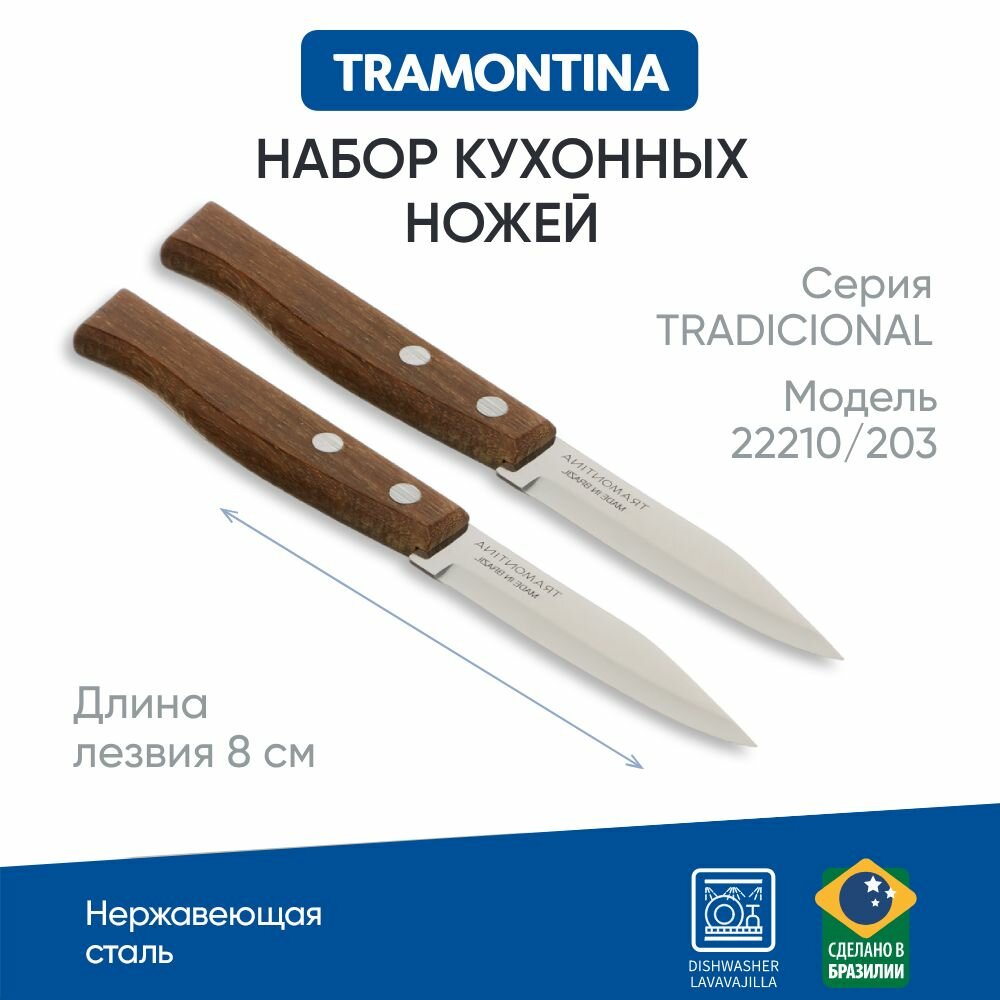 Нож кухонный Tramontina для овощей, Tradicional, лезвие 8 см, 2 шт