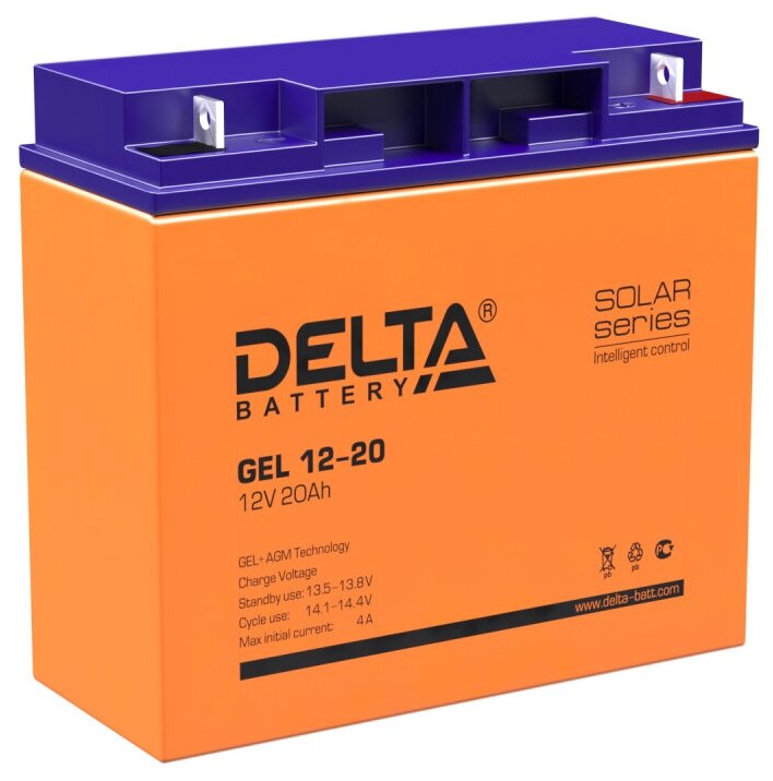 Аккумуляторная батарея Delta GEL 12-20 аккумулятор для ИБП, UPS, аккумулятор для детского электромобиля, кресла-каталки, солнечной панели, ветрогенератора