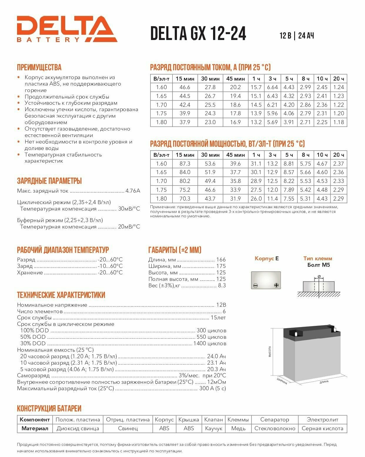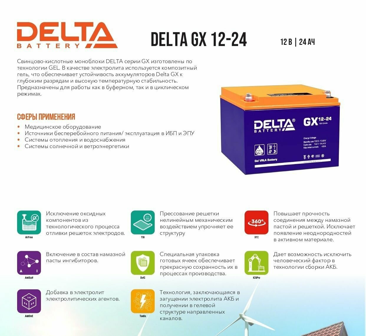 Батарея Delta GX 12-24 12В, 24Ач, 166х175х125мм интересное: