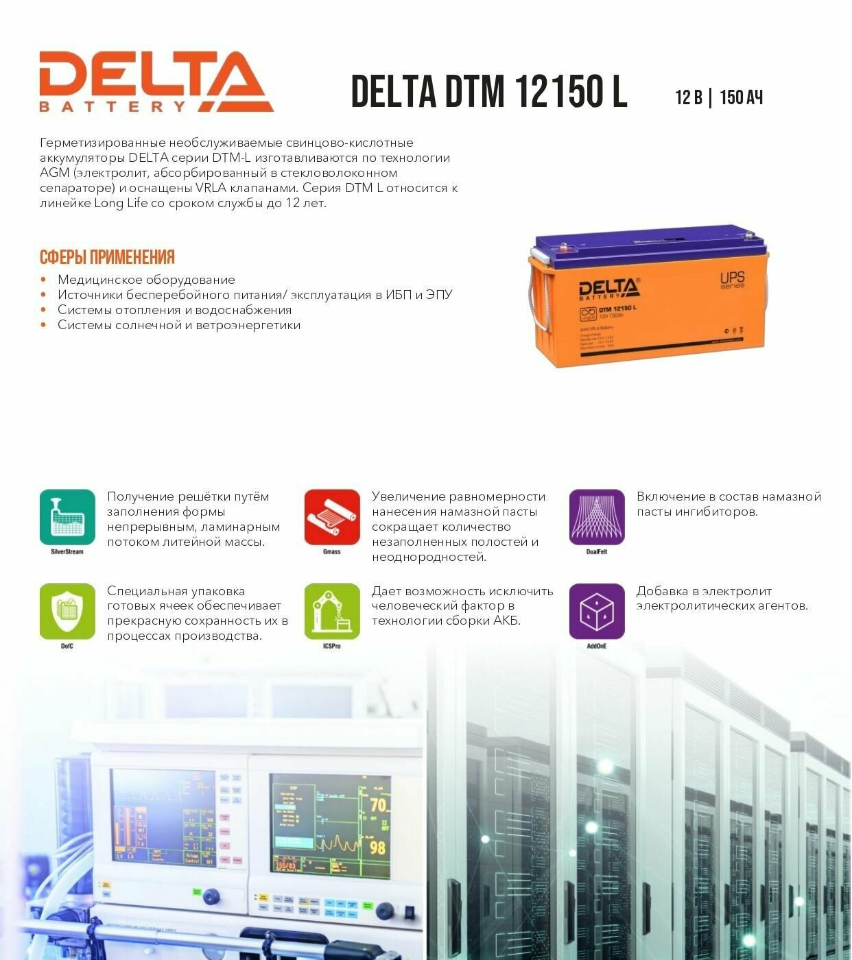 Аккумулятор Ибп 12В 150 А.ч. Delta (Dtm 12150 L) (482Х170х240) DELTA battery арт. DTM12150L