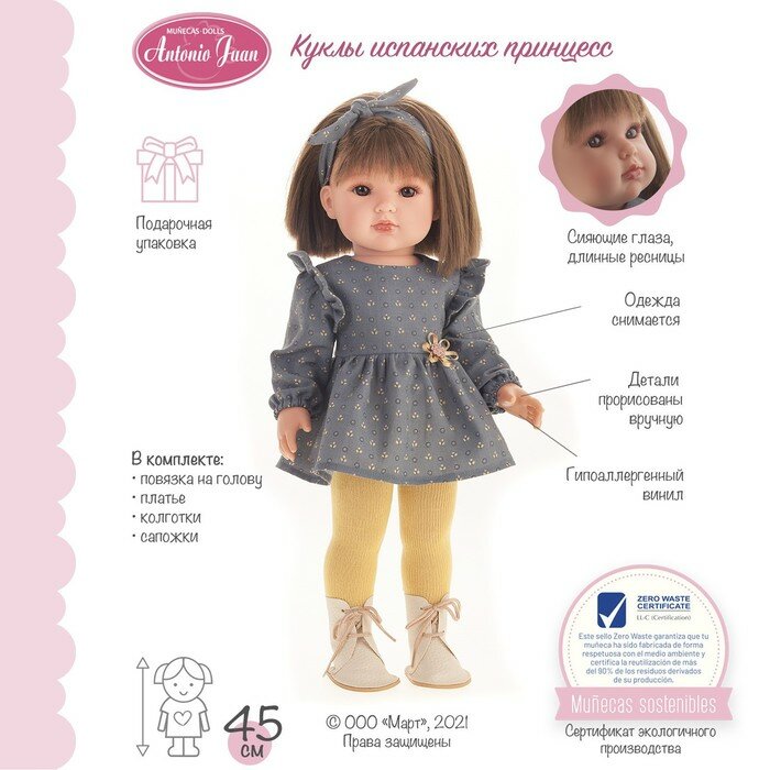 Кукла девочка виниловая ANTONIO JUAN 28009 Белла в синем, 45 см, с одеждой и аксессуарами, испанские куклы, подарок на день рождения девочке, дочке интересное: