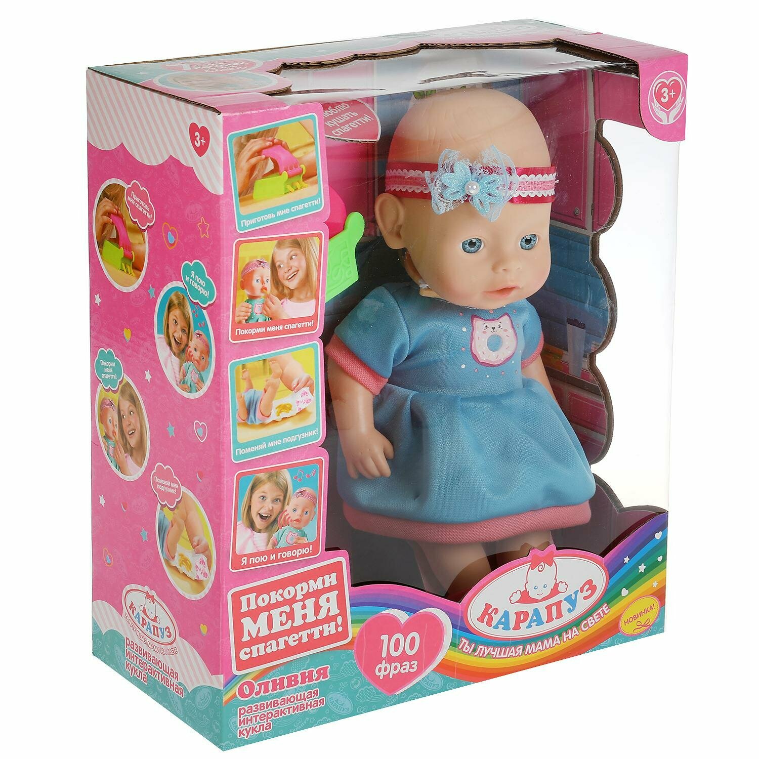 Пупс интерактивный Оливия 35см - 100 фраз, аксессуары Карапуз