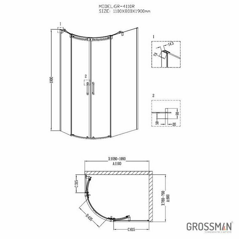 Душевое ограждение GROSSMAN GR-4110R Galaxy 110*80*191