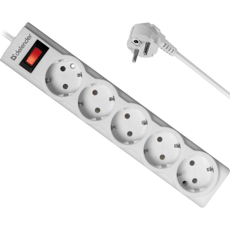 Defender Сетевой фильтр на 5 розеток Defender PowerS 18 99517, белый (1.8м) (ret)