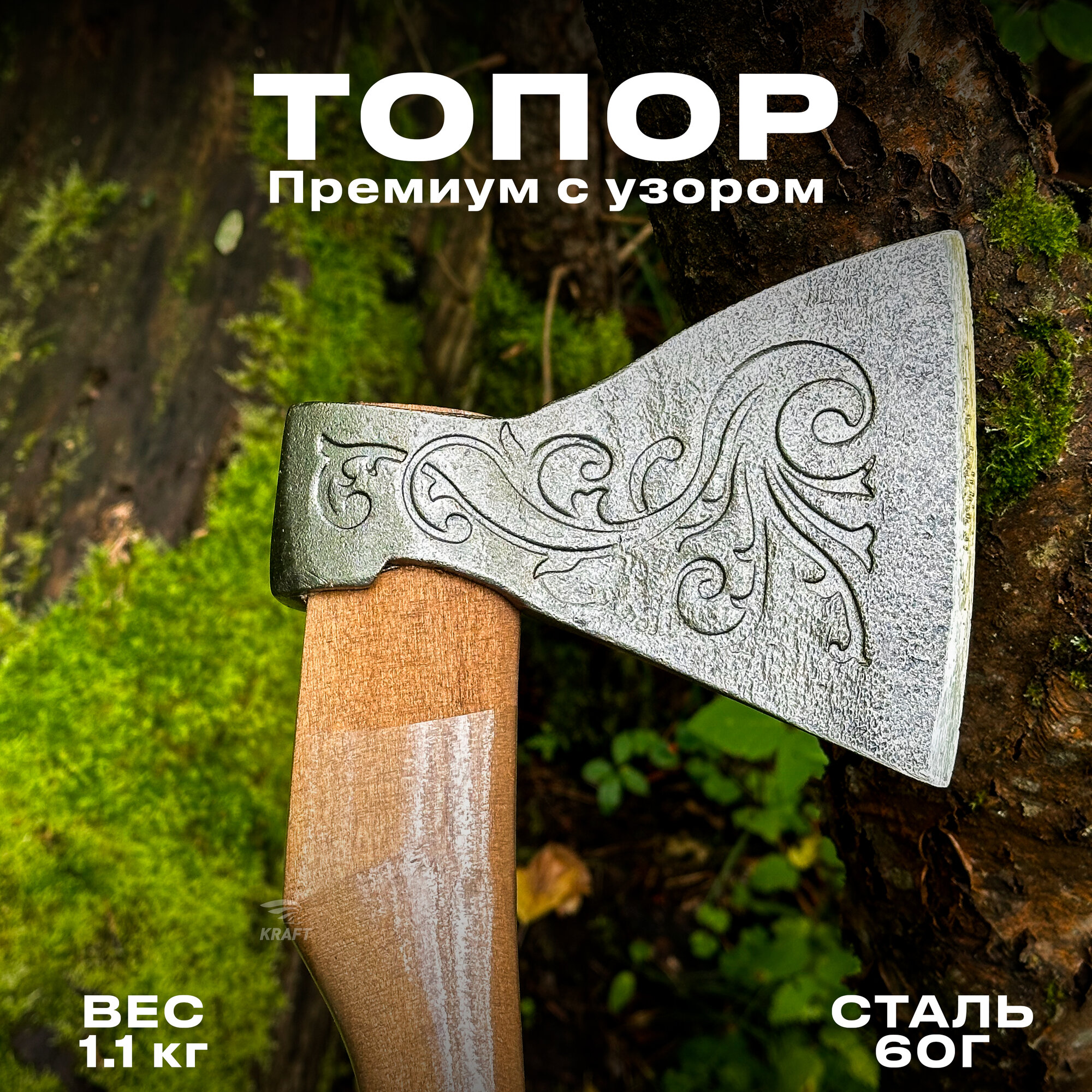 Топор кованый Премиум из высокопрочной стали марки 60Г, вес 1.1 кг
