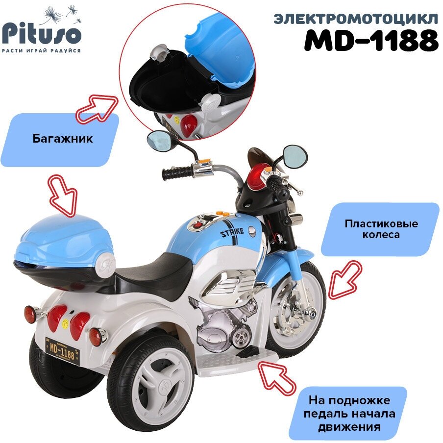 Электро-мотоцикл Pituso 1188 бело-голубой Детский электромотоцикл электро-трицикл электромобиль подарок для детей для мальчиков для девочек