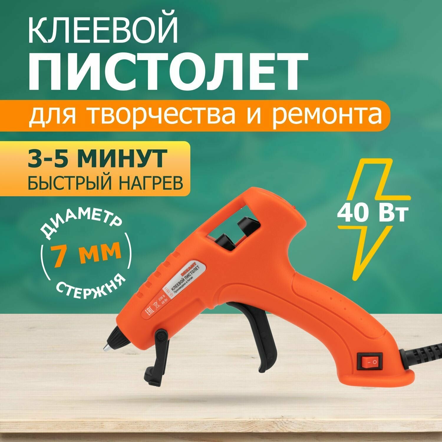 Пистолет клеевой REXANT, 40 Вт, Ø7 мм, «эксперт», блистер