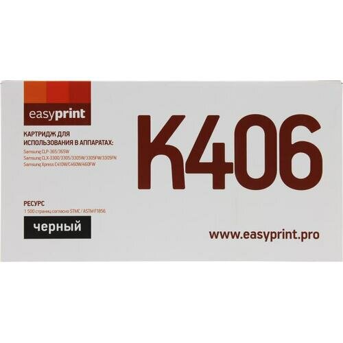 Картридж EasyPrint LS-K406 для Samsung CLP-365/365W/CLX-3300/3305/3305W/3305FW/3305FN/Xpress C410W/C460W/460FW (1500 стр.) черный, с чипом