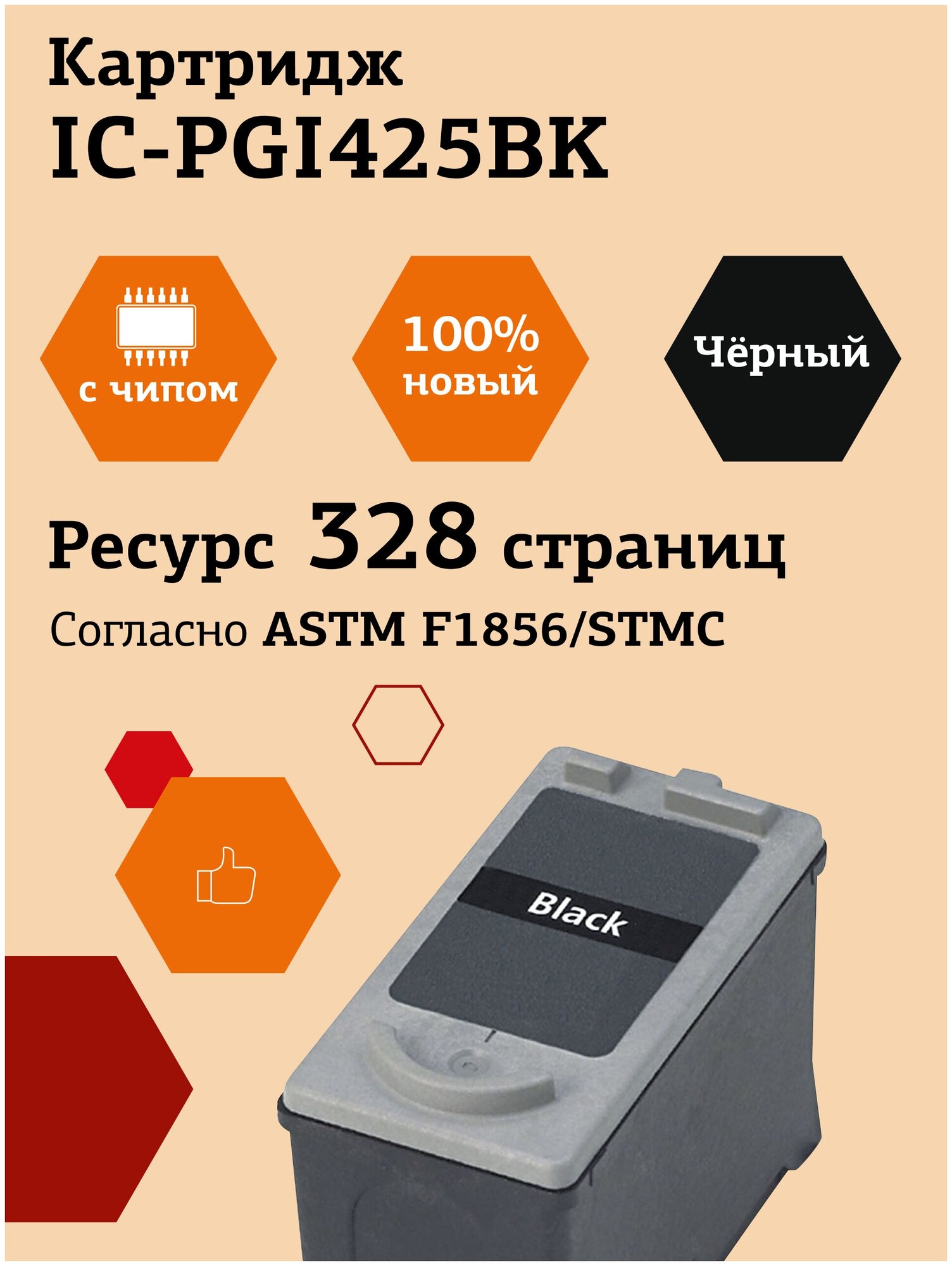PGI425BK Картридж IC-PGI425BK для Canon PIXMA iP4840/MG5140/MG6140/MX884, черный, с чипом