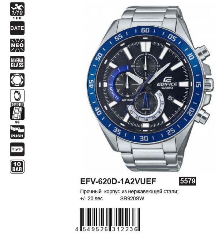 Ниже Вы можете прочитать отзывы на Часы наручные Casio EFV-620D-1A2, ознакомится с подробными характеристиками, посмотреть интересные обзоры и фотографии на Часы наручные Casio EFV-620D-1A2.