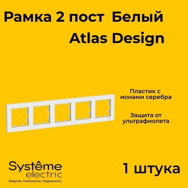 15 шт. Systeme Electric AtlasDesign Белая Рамка 2-постовая, универсальная, ATN000102