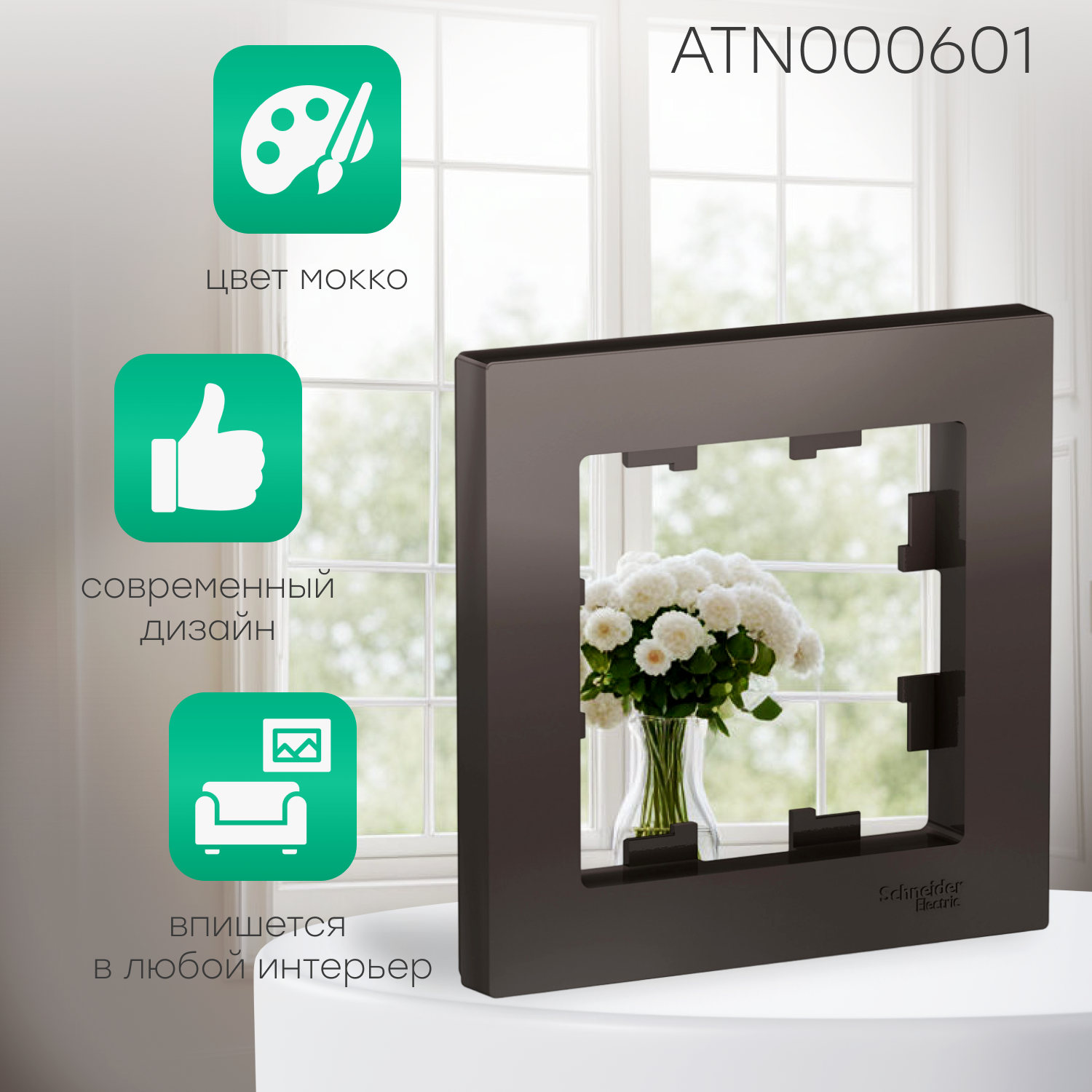 SE ATLASDESIGN 1-постовая рамка, изумруд, SCHNEIDER ELECTRIC ATN000801 (1 шт.)