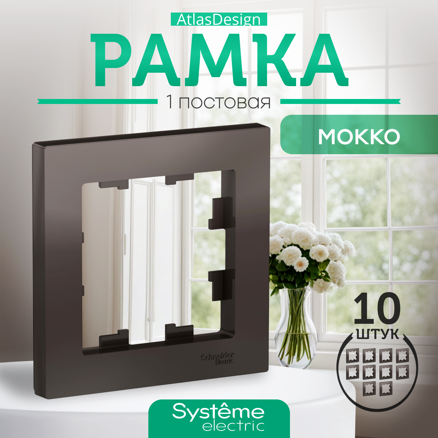 Рамка Systeme Electric Atlas Design одинарная для розеток и выключателей мокко ATN000601 - 10 шт.