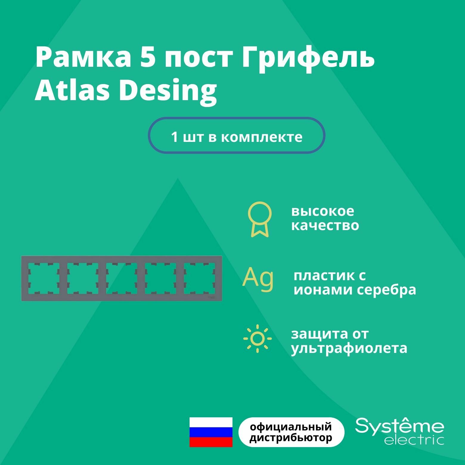 Купить Рамка для розетки выключателя пятерная Schneider Electric (Systeme Electric) Atlas Design Антибактериальное покрытие Грифель ATN000705 1шт