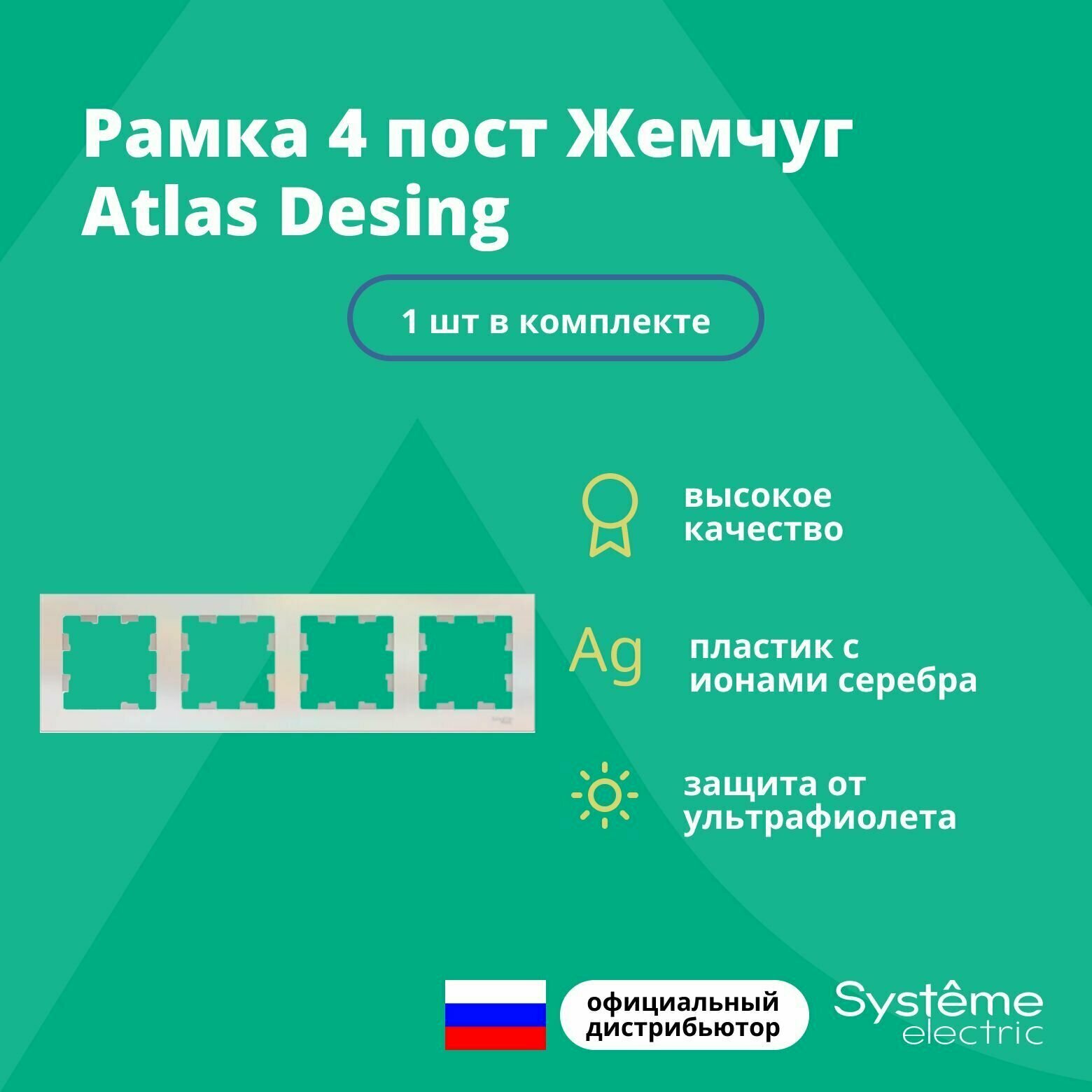 СохранитьРамка для розетки выключателя четверная Schneider Electric (Systeme Electric) Atlas Design Антибактериальное покрытие жемчуг ATN000404 1шт интересное: