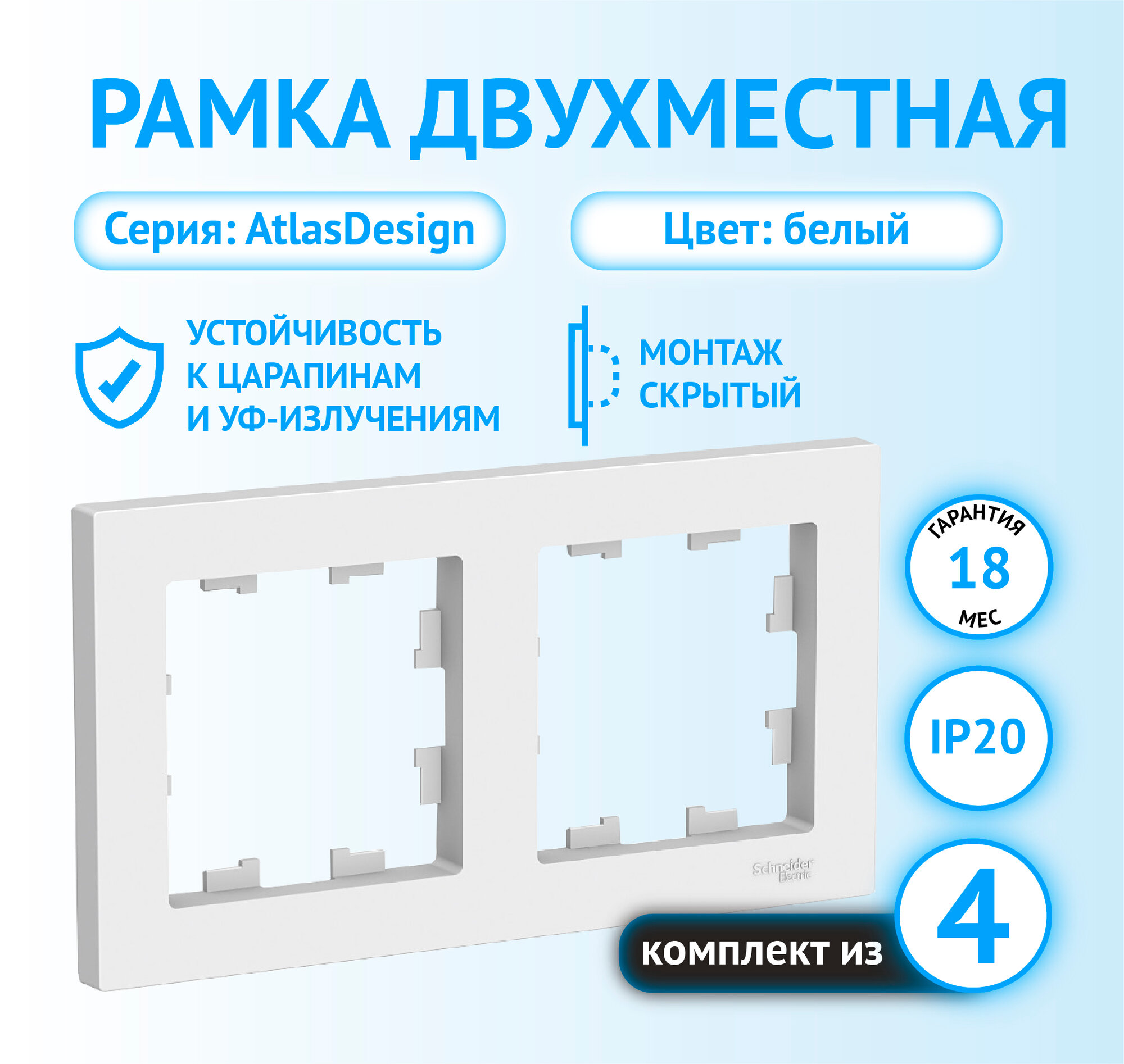 Купить Рамка Schneider Electric AtlasDesign двухместная универсальная белая (комплект из 4 шт)