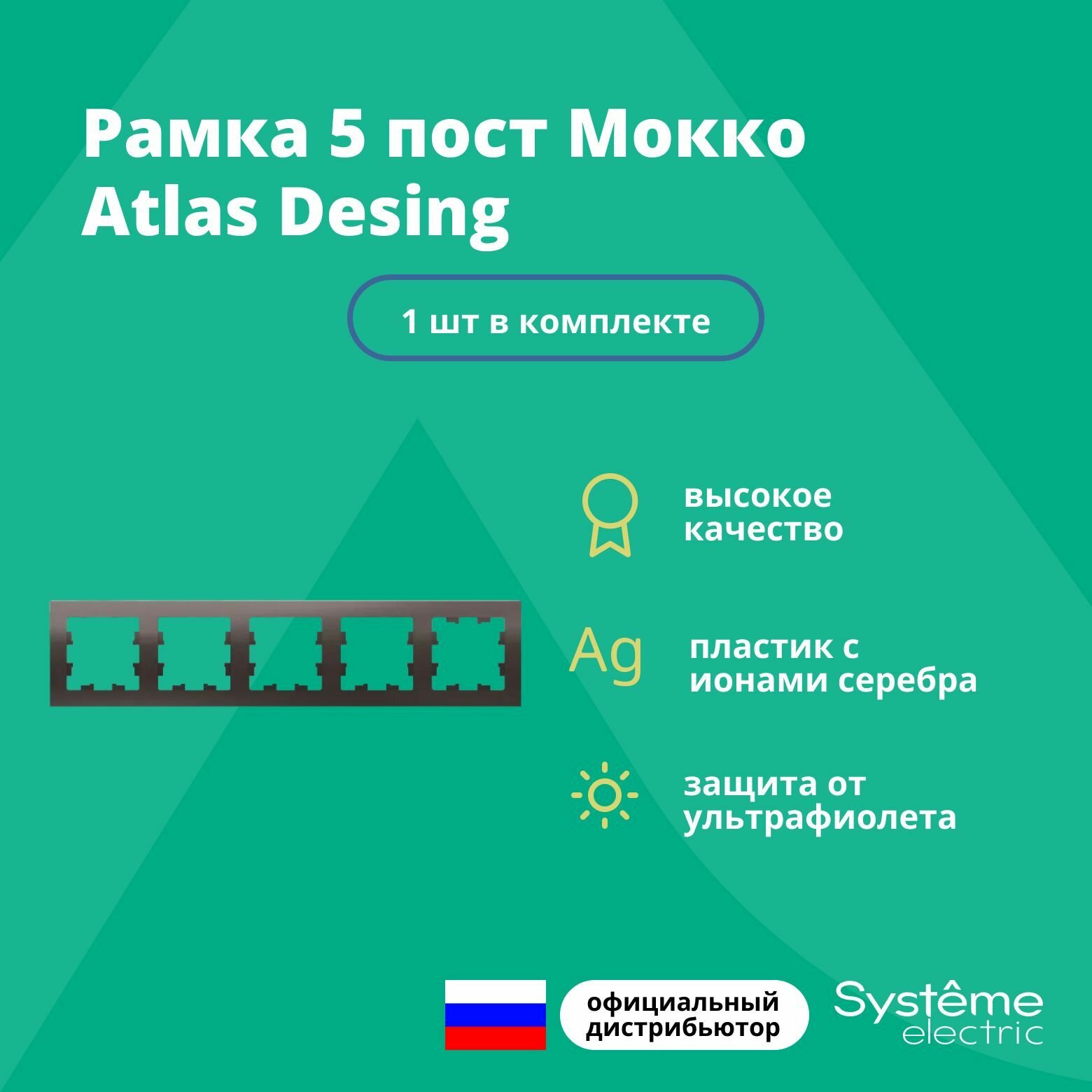Рамка для розеток и выключателей пятипостовая (Мокко), Schneider Electric AtlasDesign (комплект 3шт)