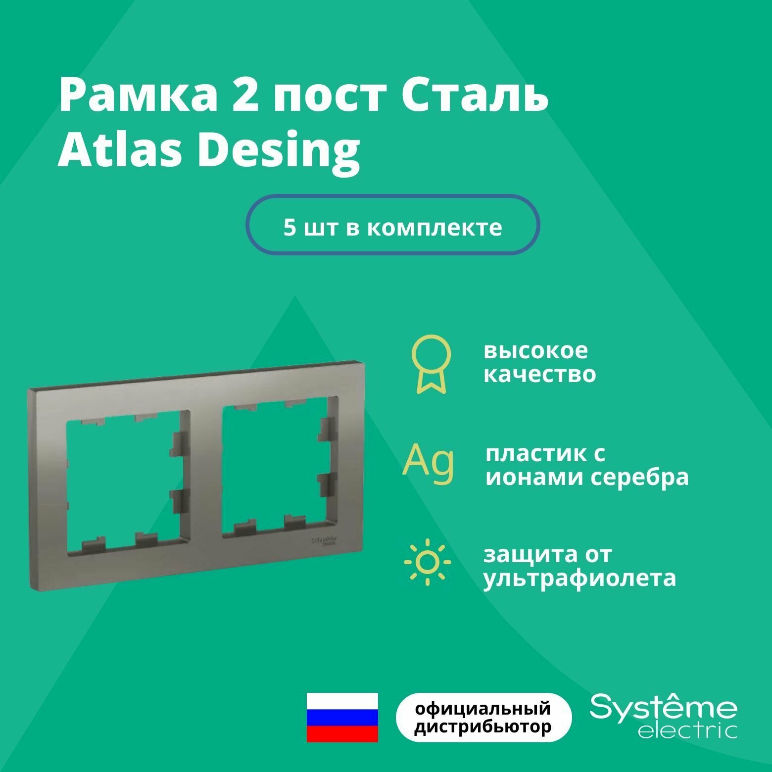 Купить Рамка для розетки выключателя двойная Schneider Electric (Systeme Electric) Atlas Design Антибактериальное покрытие Сталь ATN000902 5шт