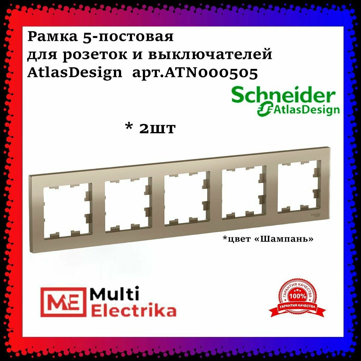 Купить Рамка 5-постовая для розеток и выключателей Шампань AtlasDesign (Атлас Дизайн) Schneider Electric ATN000505 2шт