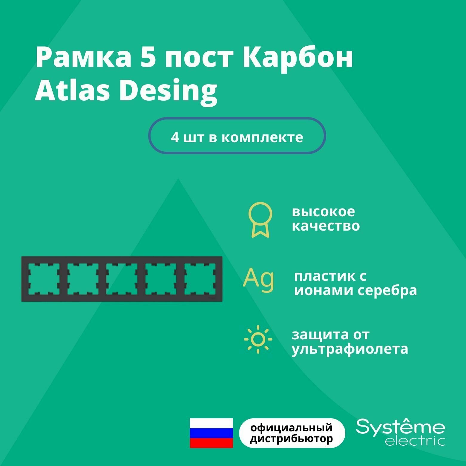 4 шт. Systeme Electric AtlasDesign Карбон Рамка 2-постовая, универсальная, ATN001002