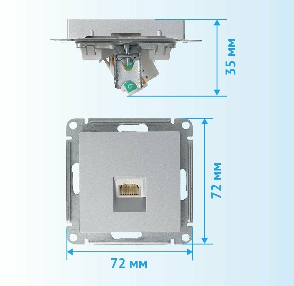 Розетка компьютерная RJ45, кат 5Е AtlasDesign, цвет сталь