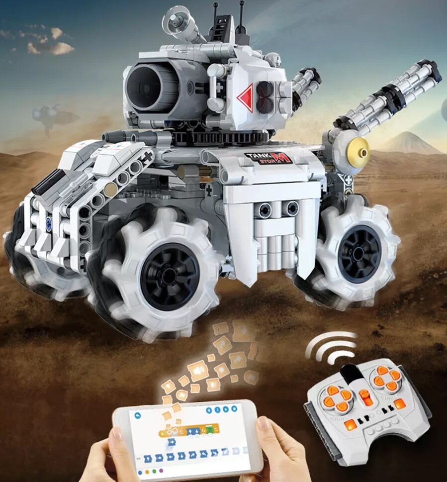 Купить Конструктор для мальчиков Машина на радиоуправлении Танк Шторм лунный танк 42*34*9 см, акк+USB, 501 деталь арт. C71012W