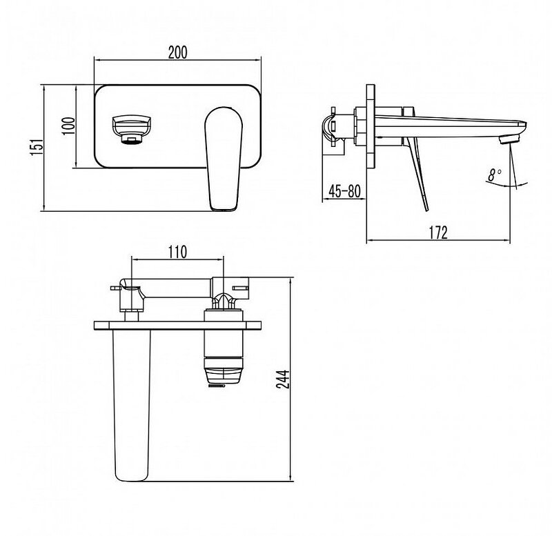 | Длина излива | 172 мм |
