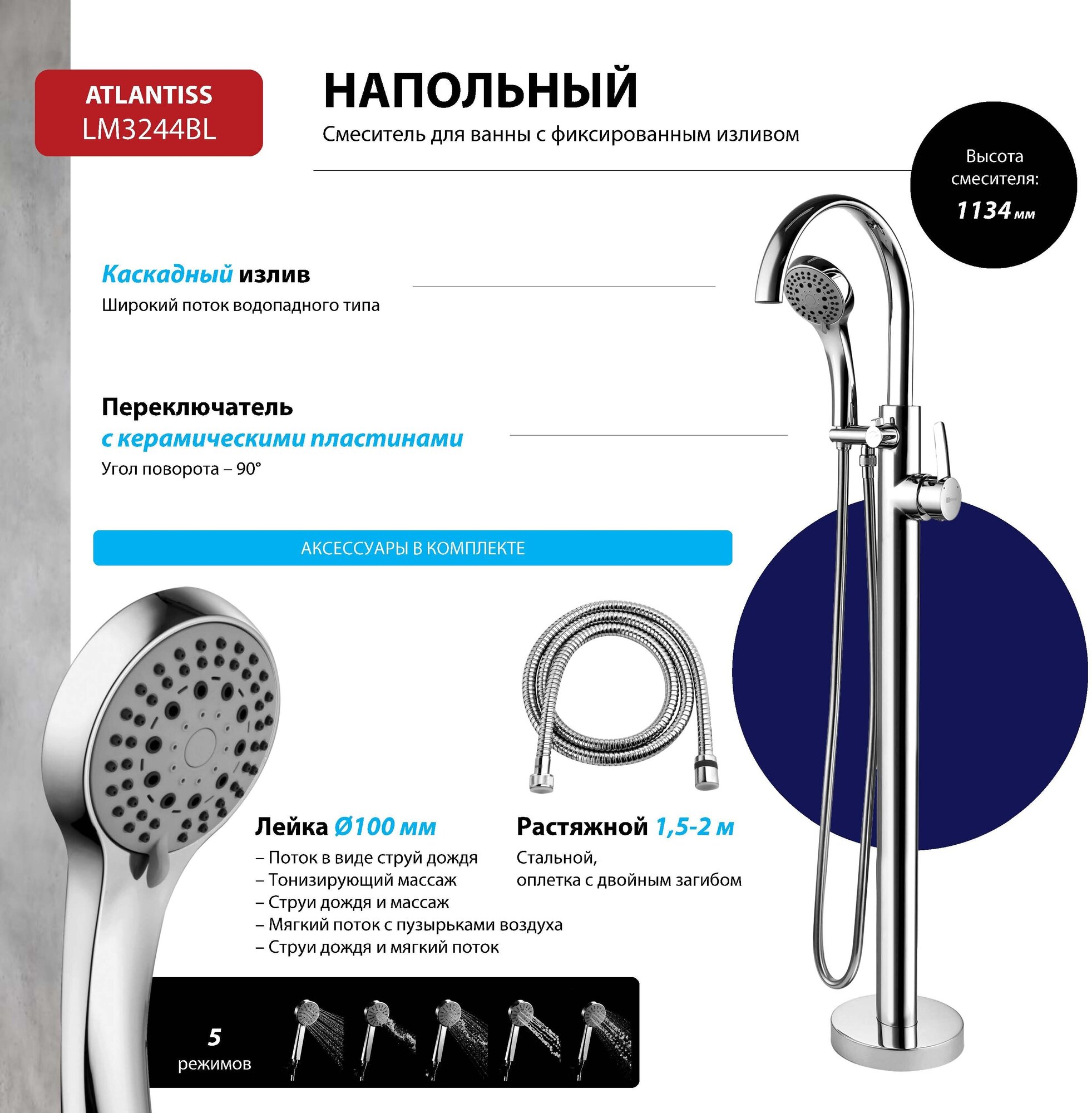 Смеситель Lemark Atlantiss LM3244C для ванны, напольный