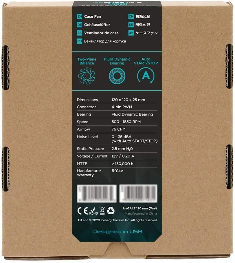 | Комплектация | Вентилятор Iceberg Thermal IceGALE 120 Teal, IceGALE_120mm_TEAL - 1 Шт. винт - 4Шт |