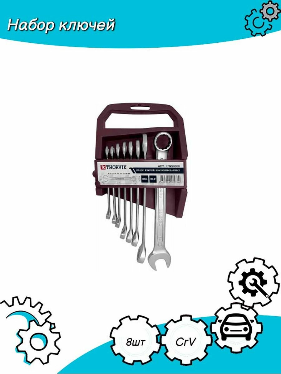 Купить THORVIK CWS0008 oem набор ключей комбинированных, 8 пр: 8, 9, 10, 12, 13, 14, 17, 19 мм, 52045, в пласт. дер