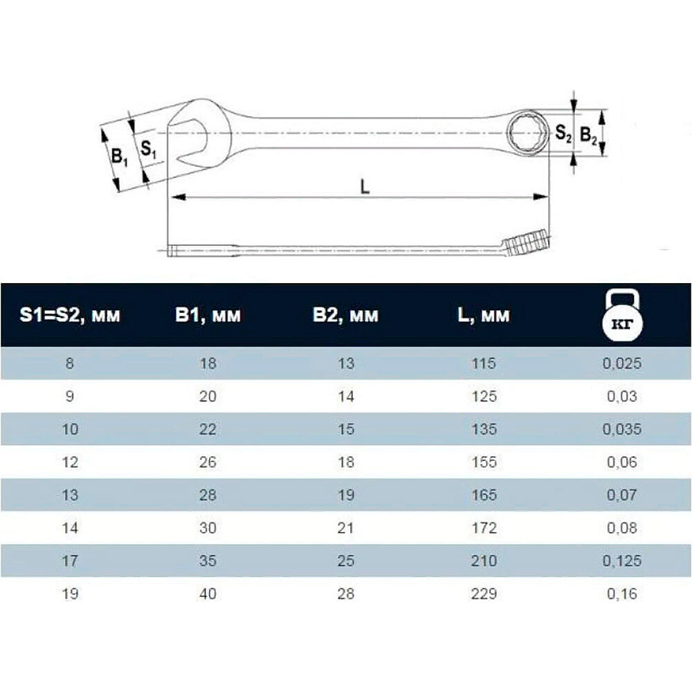 | Макс. размер гаечных ключей | 19 мм |