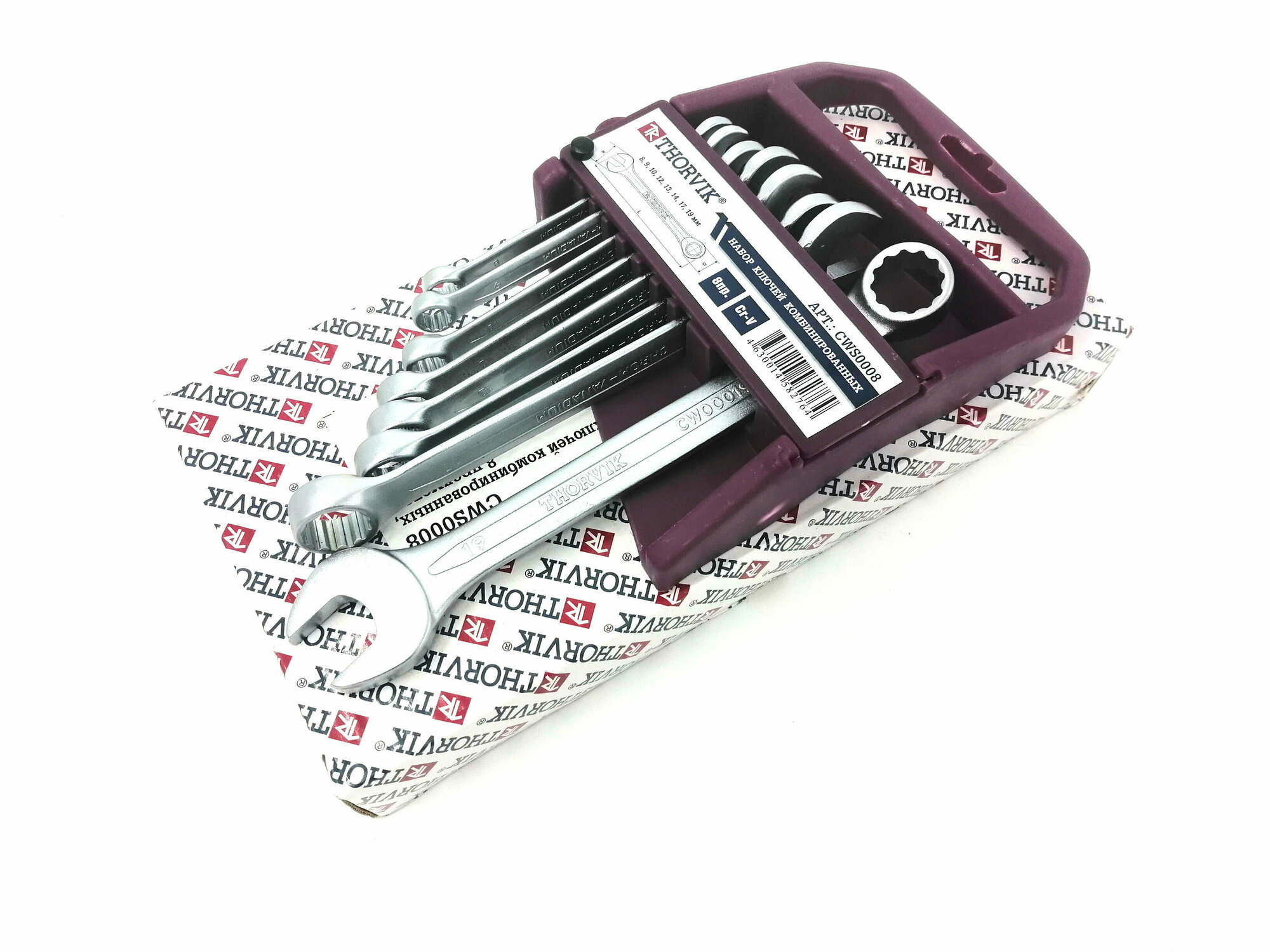 CWS0008 Набор ключей гаечных комбинированных на держателе, 8-19 мм, 8 предметов.Thorvik