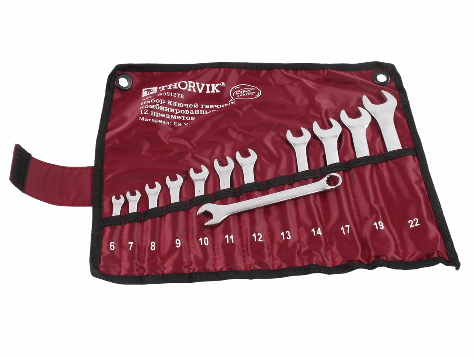 Набор ключей гаечных комбинированных серии ARC в сумке, 12 предметов (6-14,17,19,22 мм) (в тубусе Thorvik), W3S12TB-T, Thorvik