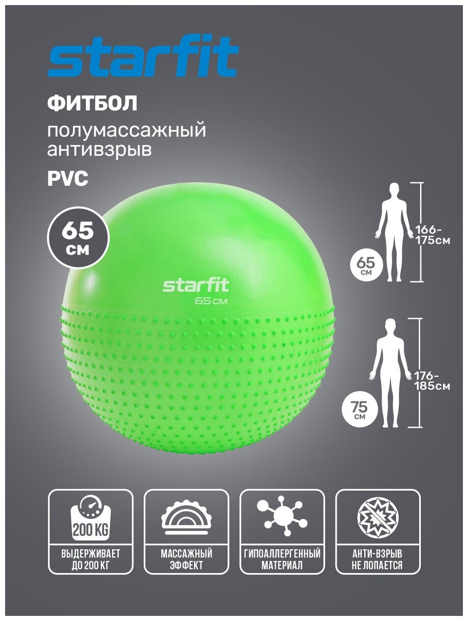 Фитбол полумассажный STARFIT GB-201 65 см, антивзрыв, зеленый