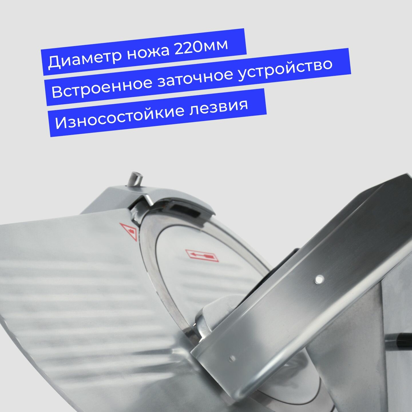 | Дополнительная информация | толщина нарезки 0-12 мм, диаметр лезвия 220 мм, максимальная ширина нарезки 160 мм |