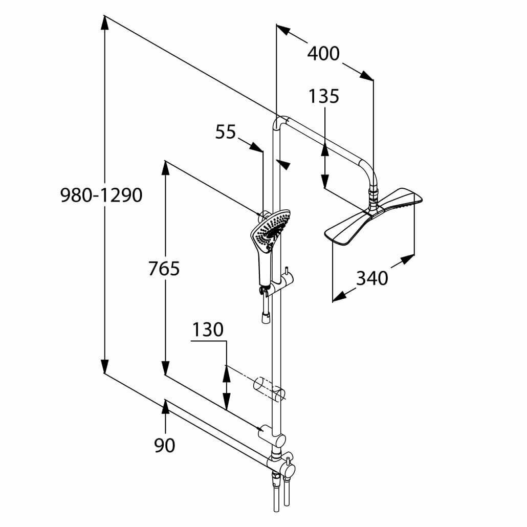 | Дополнительная информация | высота стойки для душа: 1290 мм; длина верхнего душа: 340 мм |