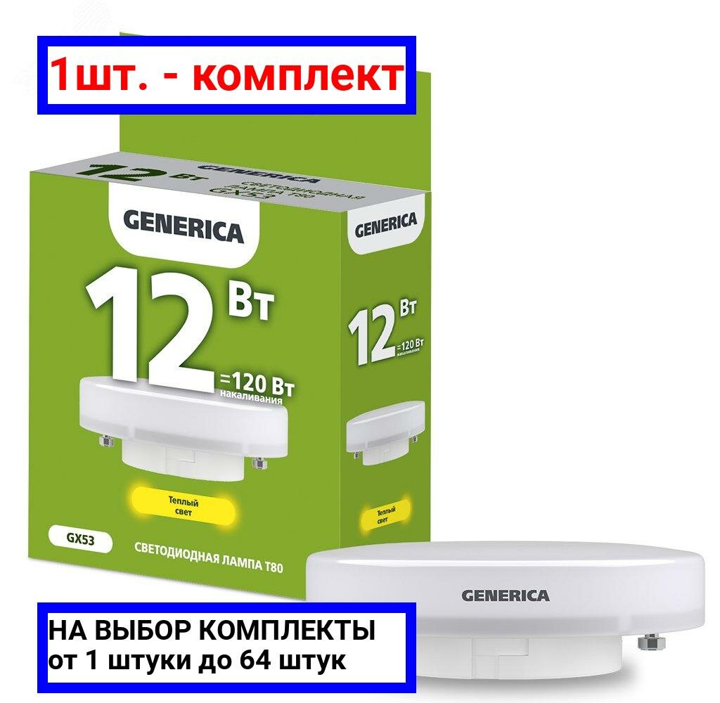 (12 шт.) Лампа LED T80 таблетка 12Вт 230В 3000К GX53 GENERICA